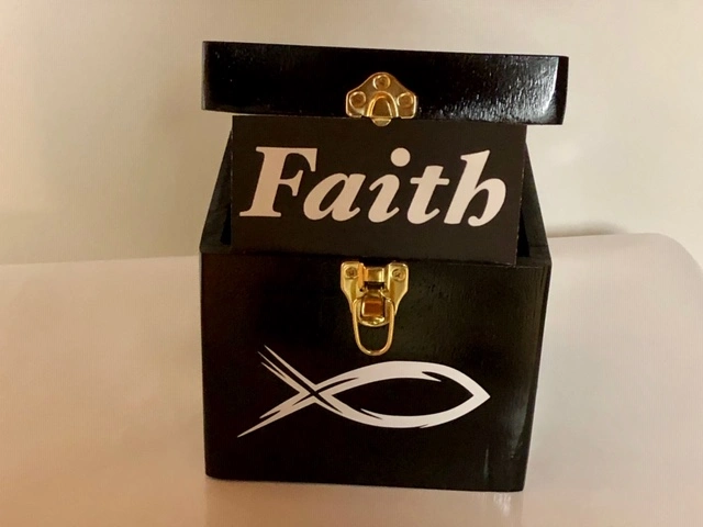 Performer shows a beautiful wooden Gospel Box. A faith card is shown and handed to the spectator. The spectator is able to lift the box. The faith card is taken away from the spectator and the spectator is unable to lift the box. The effect may be repeated with different spectators as often as you wish. The routine and effect fits perfectly for any Gospel presentation.