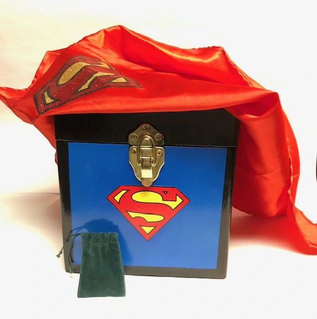 Destined to be a kid show hit! Perfomer shows a box and asks for a volunteer. The volunteer is going to be the super hero, but his only weakness is kryptonite. The performer attaches the red super hero cape to the assistant. A beautiful box is shown. The super hero has no problem lifting the box. Performer introduces the kryptonite and place it inside the box. The super hero finds the box impossible to lift, no matter how hard he/she tries.